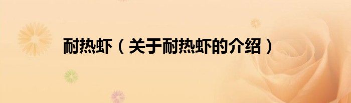 大家好,今天小乐来为大家解答以上的问题。耐热虾,关于耐热虾的介绍很多人还不知道,现在让我们一起来看看吧!