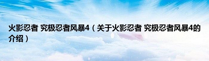 1、《火影忍者:究极忍者风暴4》是由Cyber Connect2公司开发的一款格斗类游戏,是《究极忍者风暴》系列游戏之一,于2016年2月4日发行。