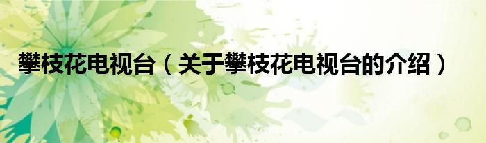 大家好,今天小乐来为大家解答以上的问题。攀枝花电视台,关于攀枝花电视台的介绍很多人还不知道,现在让我们一起来看看吧!