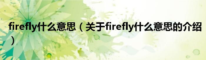 大家好,今天小乐来为大家解答以上的问题。firefly什么意思,关于firefly什么意思的介绍很多人还不知道,现在让我们一起来看看吧!
