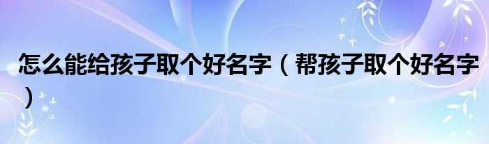 关于怎么能给孩子取个好名字,帮孩子取个好名字这个很多人还不知道,今天菲菲来为大家解答以上的问题,现在让我们一起来看看吧!