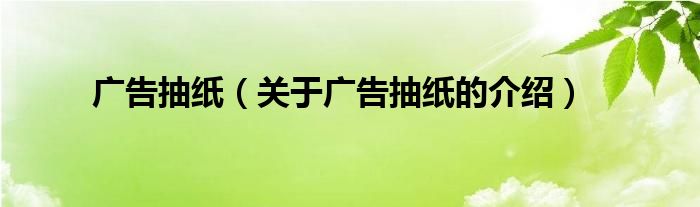 1、广告抽纸,一般指将普通的抽纸增加广告功能,是以抽纸为载体。