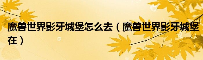 关于魔兽世界影牙城堡怎么去,魔兽世界影牙城堡在这个很多人还不知道,今天菲菲来为大家解答以上的问题,现在让我们一起来看看吧!