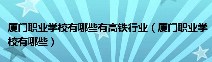 关于厦门职业学校有哪些有高铁行业,厦门职业学校有哪些这个很多人还不知道,今天菲菲来为大家解答以上的问题,现在让我们一起来看看吧!