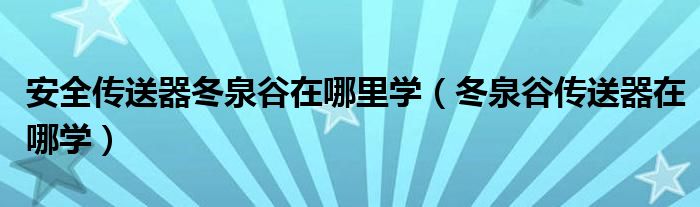 关于安全传送器冬泉谷在哪里学,冬泉谷传送器在哪学这个很多人还不知道,今天菲菲来为大家解答以上的问题,现在让我们一起来看看吧!