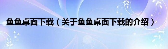 大家好,今天小乐来为大家解答以上的问题。鱼鱼桌面下载,关于鱼鱼桌面下载的介绍很多人还不知道,现在让我们一起来看看吧!