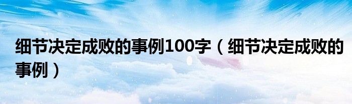 关于细节决定成败的事例100字,细节决定成败的事例这个很多人还不知道,今天菲菲来为大家解答以上的问题,现在让我们一起来看看吧!