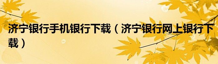 济宁银行手机银行下载(济宁银行网上银行下载)