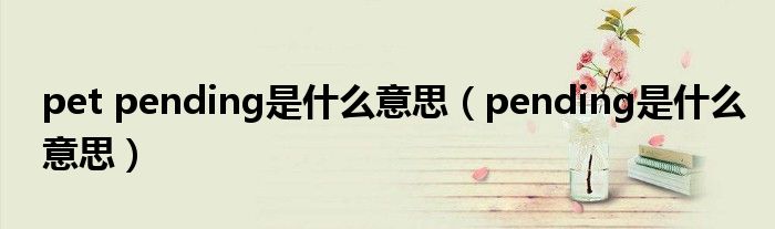 关于pet pending是什么意思,pending是什么意思这个很多人还不知道,今天菲菲来为大家解答以上的问题,现在让我们一起来看看吧!