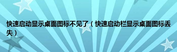 关于快速启动显示桌面图标不见了,快速启动栏显示桌面图标丢失这个很多人还不知道,今天菲菲来为大家解答以上的问题,现在让我们一起来看看吧!