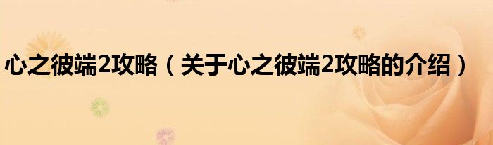 大家好,今天小乐来为大家解答以上的问题。心之彼端2攻略,关于心之彼端2攻略的介绍很多人还不知道,现在让我们一起来看看吧!