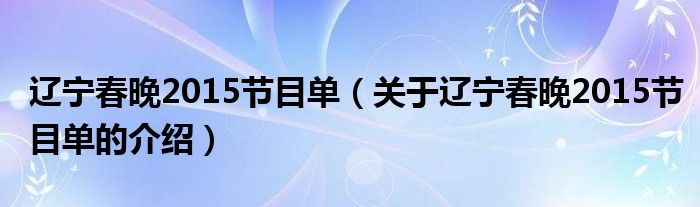 辽宁春晚2015节目单(关于辽宁春晚2015节目单的介绍)