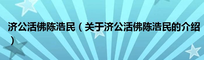 大家好,今天小乐来为大家解答以上的问题。济公活佛陈浩民,关于济公活佛陈浩民的介绍很多人还不知道,现在让我们一起来看看吧!