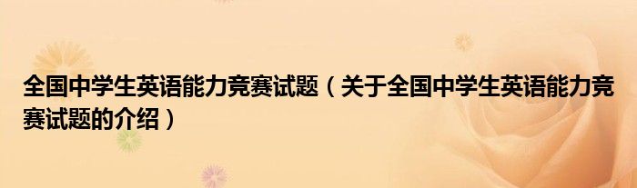 大家好,今天小乐来为大家解答以上的问题。全国中学生英语能力竞赛试题,关于全国中学生英语能力竞赛试题的介绍很多人还不知道,现在让我们一起来看看吧!
