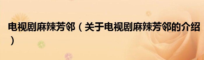 大家好,小都来为大家解答以上的问题。电视剧麻辣芳邻,关于电视剧麻辣芳邻的介绍很多人还不知道,现在让我们一起来看看吧!