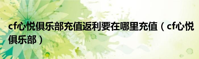 cf心悦俱乐部充值返利要在哪里充值,cf心悦俱乐部很多人还不知道,乐乐来为大家解答以上问题,现在让我们一起来看看吧!