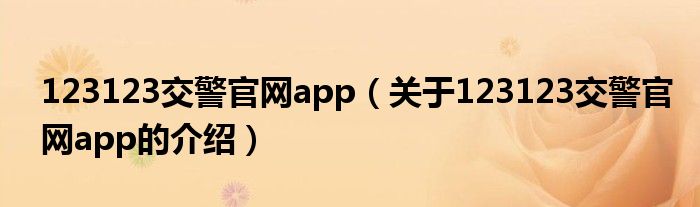 大家好,小都来为大家解答以上的问题。123123交警官网app,关于123123交警官网app的介绍很多人还不知道,现在让我们一起来看看吧!