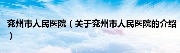 兖州市人民医院(关于兖州市人民医院的介绍)