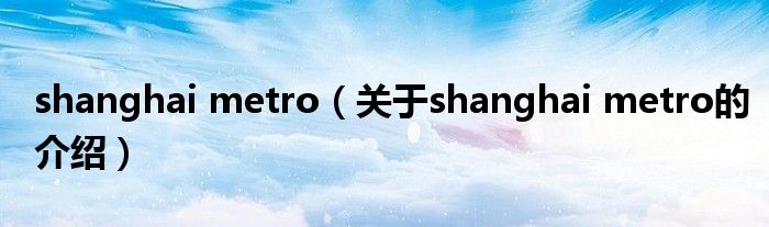 大家好,小都来为大家解答以上的问题。shanghai metro,关于shanghai metro的介绍很多人还不知道,现在让我们一起来看看吧!