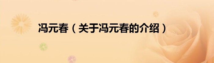 大家好,小都来为大家解答以上的问题。冯元春,关于冯元春的介绍很多人还不知道,现在让我们一起来看看吧!