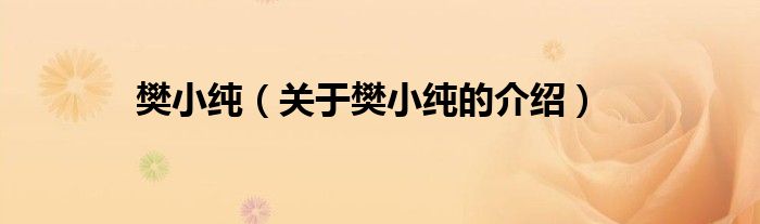 樊小纯(关于樊小纯的介绍)