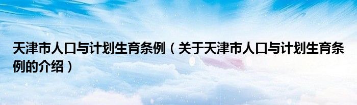 天津市人口与计划生育条例(关于天津市人口与计划生育条例的介绍)