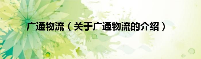 大家好,小都来为大家解答以上的问题。广通物流,关于广通物流的介绍很多人还不知道,现在让我们一起来看看吧!