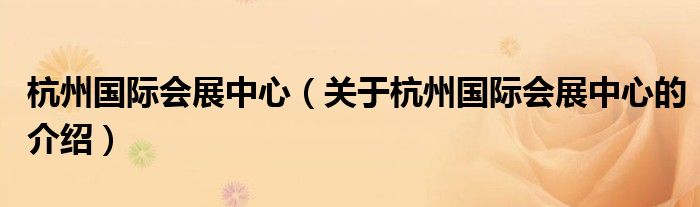 杭州国际会展中心(关于杭州国际会展中心的介绍)
