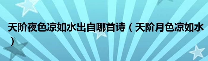 大家好,小晋来为大家解答以下问题,关于天阶夜色凉如水出自哪首诗,天阶月色凉如水很多人还不知道,今天让我们一起来看看吧!