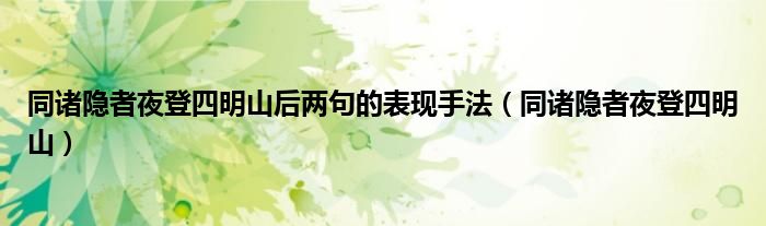 大家好,小晋来为大家解答以下问题,关于同诸隐者夜登四明山后两句的表现手法,同诸隐者夜登四明山很多人还不知道,今天让我们一起来看看吧!
