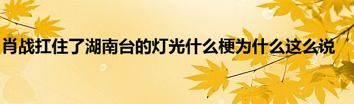 大家好.我是互联百科的羽儿,现在为大家解决以上肖战扛住了湖南台的灯光什么梗为什么这么说的问题.