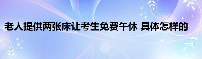 大家好.我是互联百科的羽儿,现在为大家解决以上老人提供两张床让考生免费午休 具体怎样的的问题.