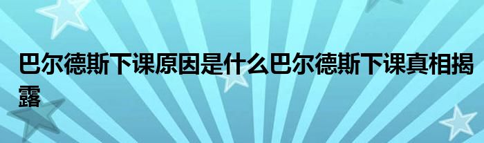 大家好.我是互联百科的羽儿,现在为大家解决以上巴尔德斯下课原因是什么巴尔德斯下课真相揭露的问题.