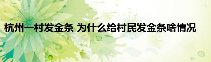 大家好.我是互联百科的羽儿,现在为大家解决以上杭州一村发金条 为什么给村民发金条啥情况的问题.