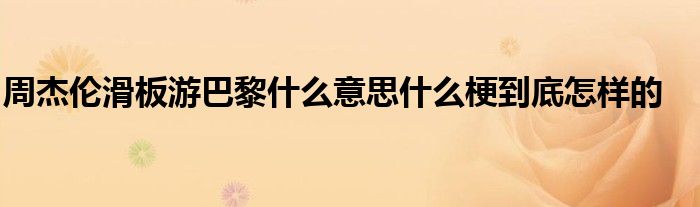 大家好.我是互联百科的羽儿,现在为大家解决以上周杰伦滑板游巴黎什么意思什么梗到底怎样的的问题.