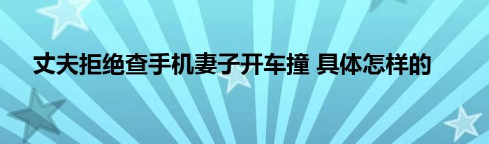 大家好.我是互联百科的羽儿,现在为大家解决以上丈夫拒绝查手机妻子开车撞 具体怎样的的问题.