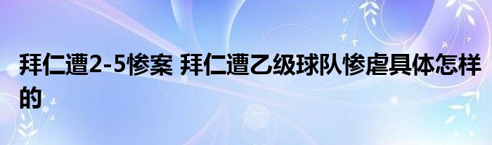大家好.我是互联百科的羽儿,现在为大家解决以上拜仁遭2-5惨案 拜仁遭乙级球队惨虐具体怎样的的问题.