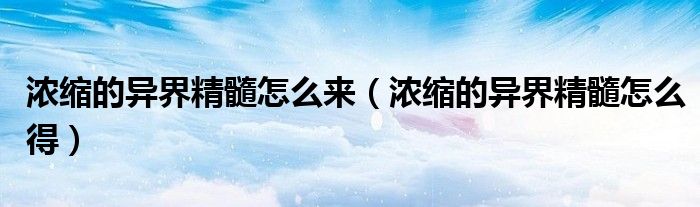 浓缩的异界精髓怎么来(浓缩的异界精髓怎么得)