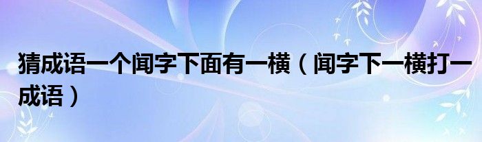 大家好,小晋来为大家解答以下问题,关于猜成语一个闻字下面有一横,闻字下一横打一成语很多人还不知道,今天让我们一起来看看吧!