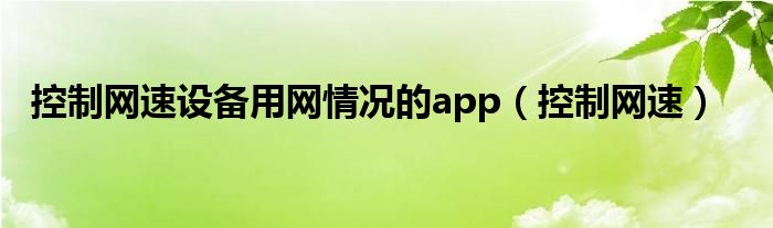 大家好,雨雨来为大家解答以上问题,控制网速设备用网情况的app,控制网速很多人还不知道,现在让我们一起来看看吧!