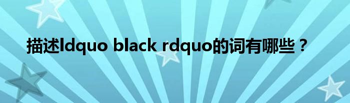关于描述ldquo black rdquo的词有哪些?这个很多人还不知道,今天菲菲来为大家解答以上的问题,现在让我们一起来看看吧!