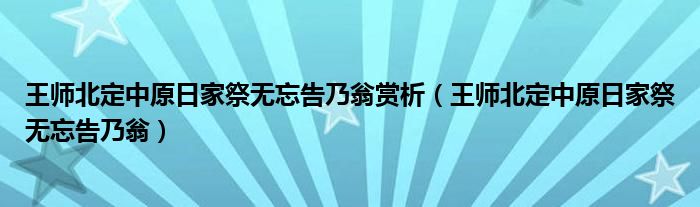 关于王师北定中原日家祭无忘告乃翁赏析,王师北定中原日家祭无忘告乃翁这个很多人还不知道,今天菲菲来为大家解答以上的问题,现在让我们一起来看看吧!