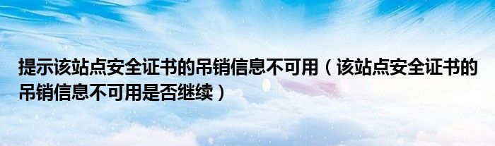 关于提示该站点安全证书的吊销信息不可用,该站点安全证书的吊销信息不可用是否继续这个很多人还不知道,今天菲菲来为大家解答以上的问题,现在让我们一起来看看吧!