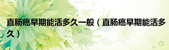 大家好,乐天来为大家解答以下的问题,直肠癌早期能活多久一般,直肠癌早期能活多久很多人还不知道,现在让我们一起来看看吧!