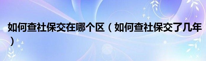 关于如何查社保交在哪个区,如何查社保交了几年这个很多人还不知道,今天菲菲来为大家解答以上的问题,现在让我们一起来看看吧!