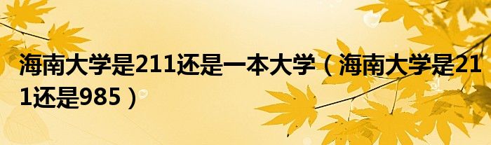 1、"海南大学是国家“211工程”重点建设高校、国家“世界一流学科”建设高校、教育部和海南省人民政府部省合建高校。