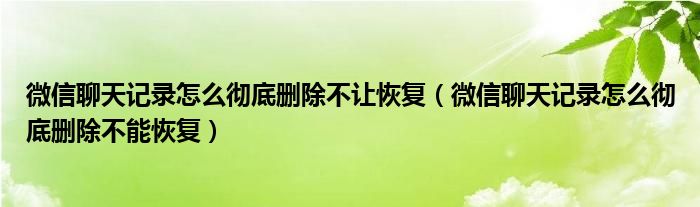关于微信聊天记录怎么彻底删除不让恢复,微信聊天记录怎么彻底删除不能恢复这个很多人还不知道,今天菲菲来为大家解答以上的问题,现在让我们一起来看看吧!