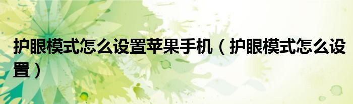 大家好,小晋来为大家解答以下问题,关于护眼模式怎么设置苹果手机,护眼模式怎么设置很多人还不知道,今天让我们一起来看看吧!