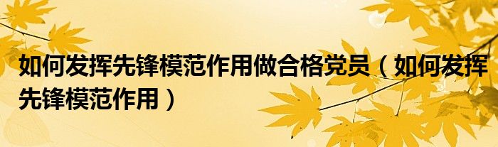 关于如何发挥先锋模范作用做合格党员,如何发挥先锋模范作用这个很多人还不知道,今天菲菲来为大家解答以上的问题,现在让我们一起来看看吧!