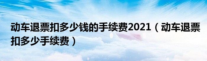 关于动车退票扣多少钱的手续费2021,动车退票扣多少手续费这个很多人还不知道,今天菲菲来为大家解答以上的问题,现在让我们一起来看看吧!